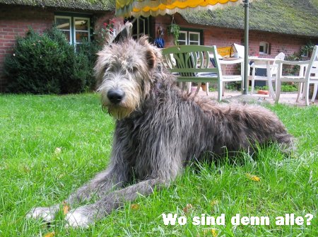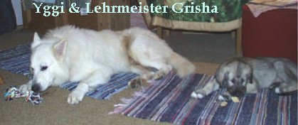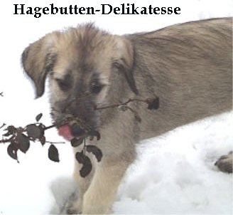 Mir ging es ähnlich - ein IW war immer mein Traumhund. 1997 kam Cerberus zu mir - mein Glück war perfekt, er entsprach allen Erwartungen - am 21.Sept.2002 musste er wegen Magen- und Milzdrehung operiert werden, am 22.Sept.2002 ist er an Kreislaufversagen verstorben. Aber das Leben geht halt weiter, und nachdem ich den Schock überwunden hatte, begab ich mich auf die Suche nach einem neuen Wölfchen - einen möglichst hellen Hund wollte ich. Cerbi war als Baby pechschwarz - ich wollte die schwermütigen Erinnerungen und Vergleiche möglichst dämpfen. Na ja, am 21. Jänner 2003 konnte ich meinen neuen Schatz abholen - Yggdrasil von der Saalmühle (kurz Yggi - Y ist ein Wahnsinn zur Benamsung. Chinesisch, japanisch wollte ich es nicht, und so bin ich halt bei den Germanen gelandet - passt besser für einen IW. Wenn das Hundserl nun erfüllt, was der Name verspricht, dann muss Yggi groß, hell und sehr alt werden). Er hat sich schon ganz toll bei uns eingelebt, der alte (9J) weiße Schäferhund Grisha erzieht ihn vorbildlich - na, Yggi ist eben ein ganz lieber, herzlicher, ehrlicher Hund. Vielleicht ein paar Bilderl zur Ansicht ? Klein Yggdrasil hat festgestellt, dass auch schon abgefrorene Hagebutten ausgezeichnet schmecken. Klar, Vitamin in der kalten Jahreszeit - ist der nicht g'scheit?